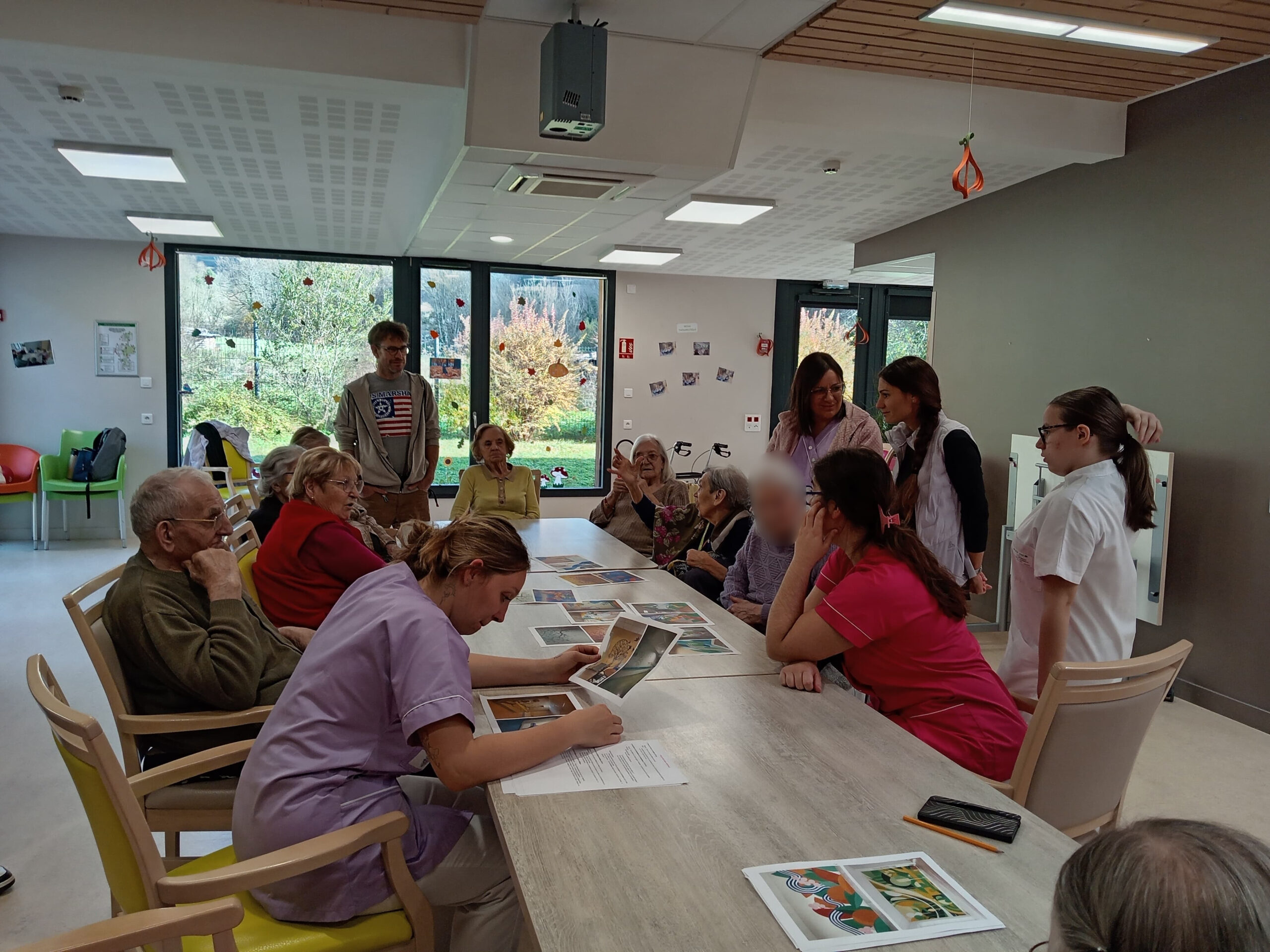 Après un vote collectif, les participants ont choisi l’artiste muraliste Stéphane Paret, dont l’univers graphique accompagnera ce projet. La phase de réflexion artistique a réuni un public large : agents, résidents, familles, bénévoles, stagiaires, mais aussi les scolaires de Cerdon.