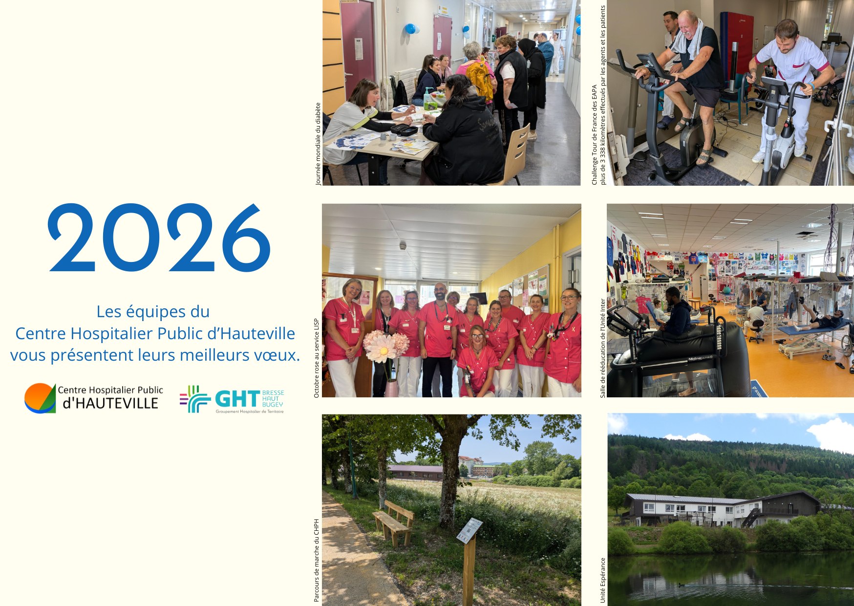 Les équipes du Centre Hospitalier Public d’Hauteville vous présentent leurs meilleurs vœux 2026 🎉 Découvrez également Sep 24, 2025 ÉvénementLa bientraitance en EHPAD à travers un escape game Parler de la bientraitance en EHPAD de façon ludique, c'est le défi que s'est donné… Nov 20, 2025 Événement« Grandir en forme », un programme proposé pour les jeunes de 5 à 16 ans en situation d’obésité De nouveaux groupes pour le programme Grandir en Forme vont être constitués pour la période… Oct 14, 2025 ÉvénementSemaine Européenne du Développement Durable : plusieurs animations sur le CHPH et à l’Albizia A l’occasion de la semaine européenne du développement durable du 22 au 26 septembre 2025,…